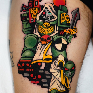 A massive thanks to Gabriele for his time in sharing his thoughts and time with us all! I haven't really come across many tattooists creating Warhammer inspired tattoos, but Gabriele's fit in so very well with his traditional style of tattooing. He's got a very unique style in the way he uses his colours, creating such vibrant and punchy pieces. But I also love how his black and white work allows Warhammer creatures to subtly fit in to a traditional style, so they wouldn't look alien against a dagger or panther face. That's real Warhammer-y talent right there.